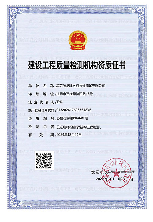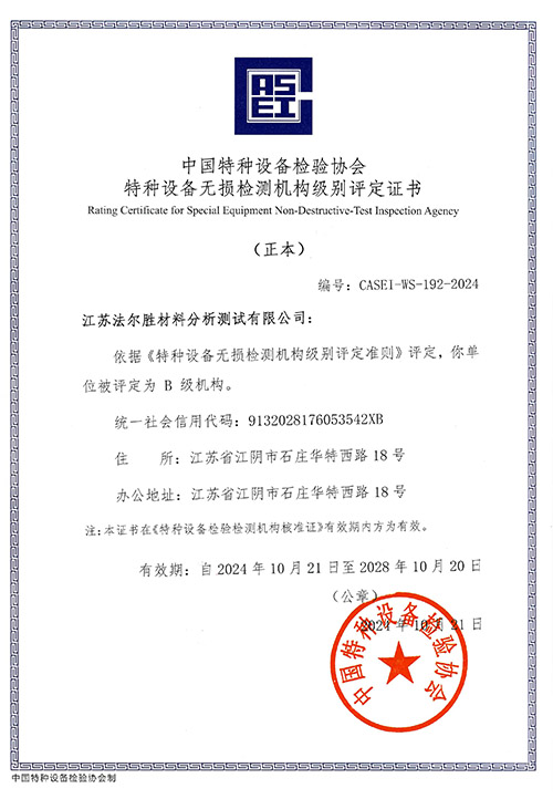 江苏法尔胜材料分析测试有限公司成立于1989年,一直从事专业的检测工作,高新技术企业、江苏省专精特新中小企业。检测内容包括材料的物理、化学性能检测,无损检测及桥梁维护检查等。